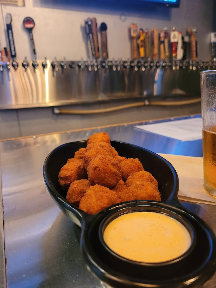 I was lured in by the goldens and stayed for the food. Did not disappoint! This place is amazing!! My husband and I ate here for our anniversary. We started with the mozzarella logs — delicious. My husband got a NY sour and I got the pomegranate martini, both very good. We ordered two burgers, I got the brisket burger and my husband got the bacon jam; both were very juicy and made with high quality beef. We finished off the night with the cheesecake! Service did NOT suffer even though they were short staffed. Our water cups were always filled and everyone was very pleasant. The only things that could improve- my burger was supposed to have coleslaw and did not this time (I stole some of my husband’s so I didn’t miss out). No points deducted though (short staffed and two days before Christmas). Also, the restaurant side was a little chilly. Overall, we are sold! Thank you for a great night everyone.